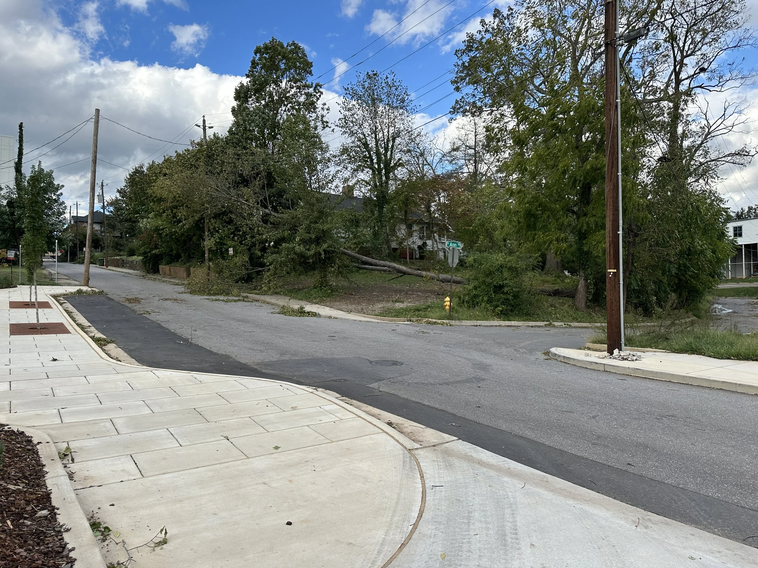 Luckily, the path to my apartment was clear. We navigated cautiously through intersections where streetlights had failed, wary of others who might not treat them as stop signs. My apartment seemed mostly unaffected except for the lack of power, internet, and water. I gathered essentials and we continued downtown. Asheville was desolate, with closed stores and fallen branches scattered throughout the streets. People were lined up outside the Wall Street Market, which was only taking cash and had limited supplies. Lacking cash, we kept searching for more resources.